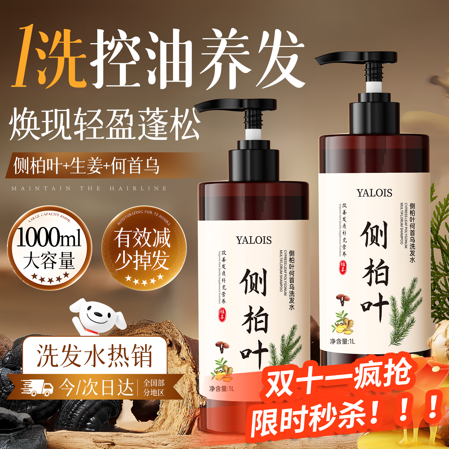 包邮 娅洛思侧柏叶生姜何首乌洗发水男女士防断洗发露去屑止痒控油持久蓬松1L