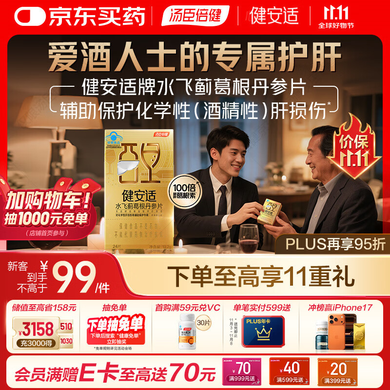 包邮 汤臣倍健健安适小金砖水飞蓟葛根丹参片24粒 喝酒应酬护肝片